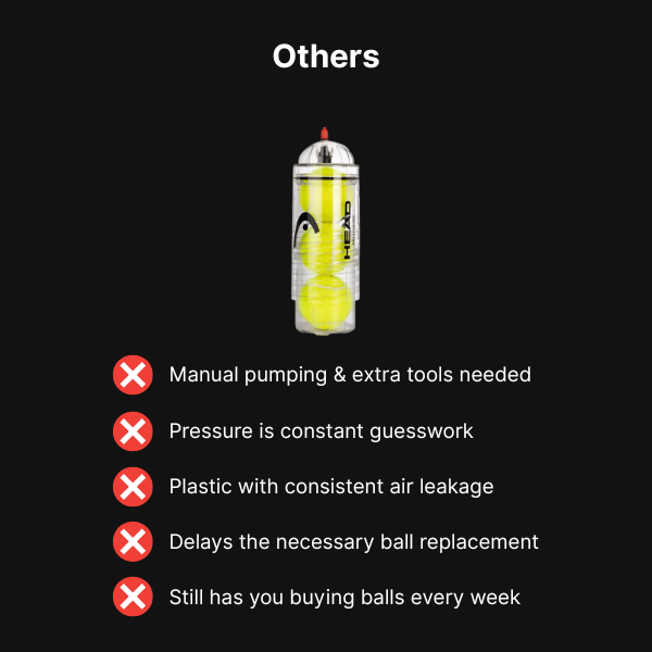 It's key to pressurize your balls every time after your matches. Simply pop them into the Bouncelock and leave them in there until the next time you play. With the automatic mode your Bouncelock will pressurize your balls at a convenient time.