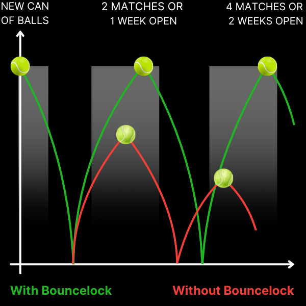 You can play pressurized balls up to 4 times longer as if you weren't using Bouncelock.